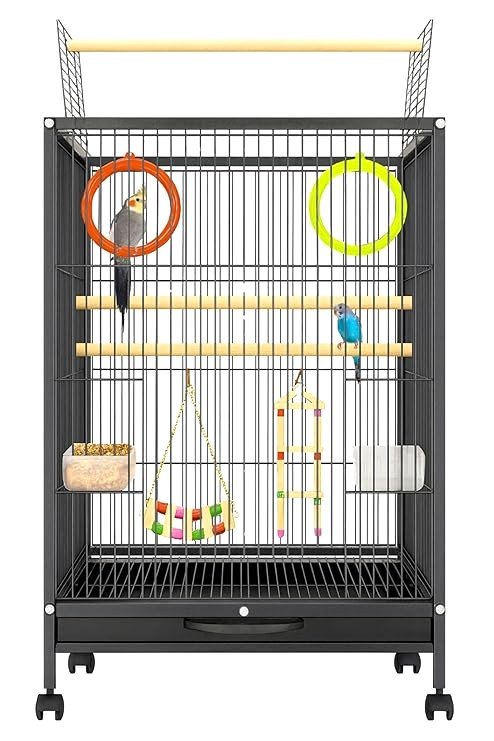 Large Bird Cage is perfect for small to medium-sized birds, and is designed to a offer exercise, rest and entertainment. It is compact design fits easily into a any home but still allows ample room for your birds to a grow. Keeping your feathered friends happy and healthy with this Cage makes for a great home for your pet.